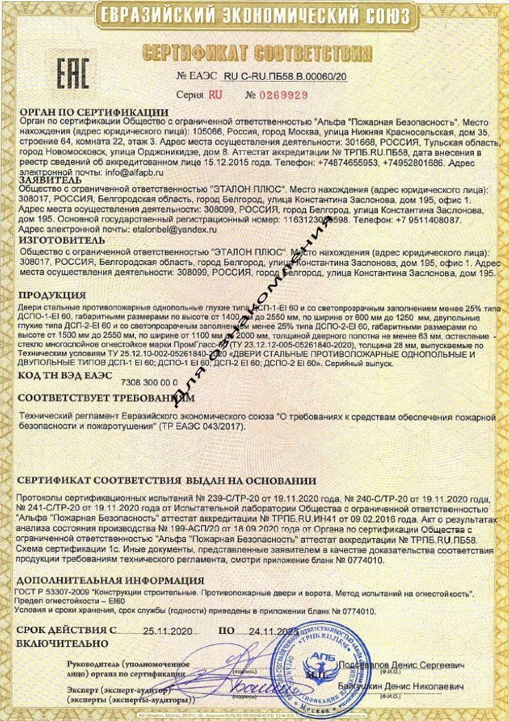 • Сертификат соответствия требованиям пожарной безопасности.