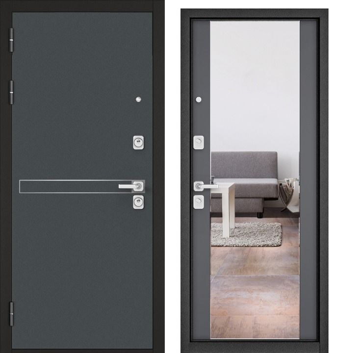 Входная дверь Мастино (Бульдорс) CITY PRIME D-4/164 Черный муар-Оскуро, зеркало — купить в Томске в компании RosDoor (Сталь-сервис)
