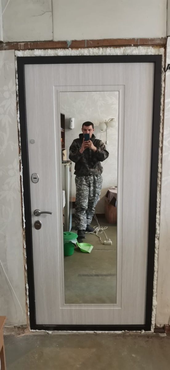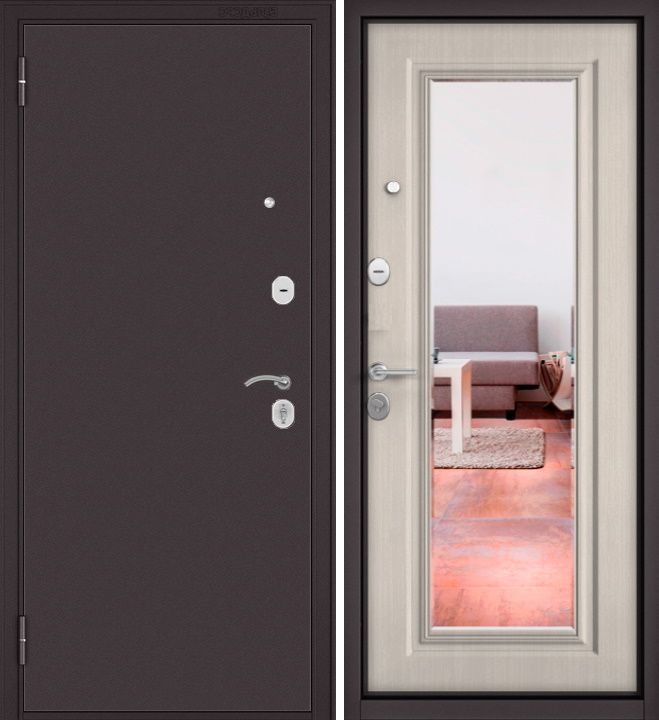 Входная дверь в квартиру Мастино (Бульдорс) Econom 60/140 (Букле шоколад - Ларче бьянко, зеркало) фото 4
