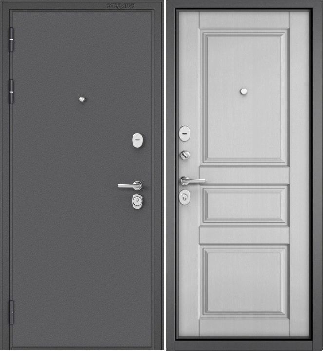 Входная дверь Мастино (Бульдорс) STANDART 90/D-2 (Букле графит-Белый софт) — купить в Томске в компании RosDoor (Сталь-сервис)