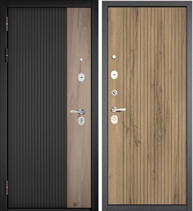 Артикул Дверь стальная Мастино TRUST ECO 401/161 Черный мат.-ДГМ/Антрацит букле-Дуб галиф. мед, черн 860 лев