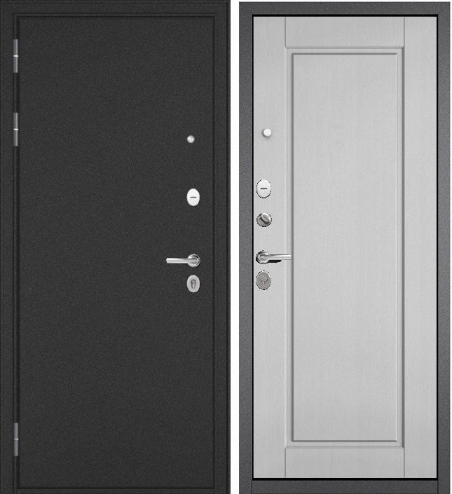 Артикул: Дверь стальная Мастино TRUST MASS 0 Антрацит букле-Дуб белый скандинавский, черная кв. 860 левая