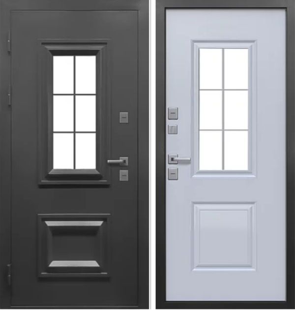 Толщина дверного полотна: 110 мм Глубина дверного короба: 141 мм Стеклопакет: 4-х камерный с зеркальной тонировкой и ковкой