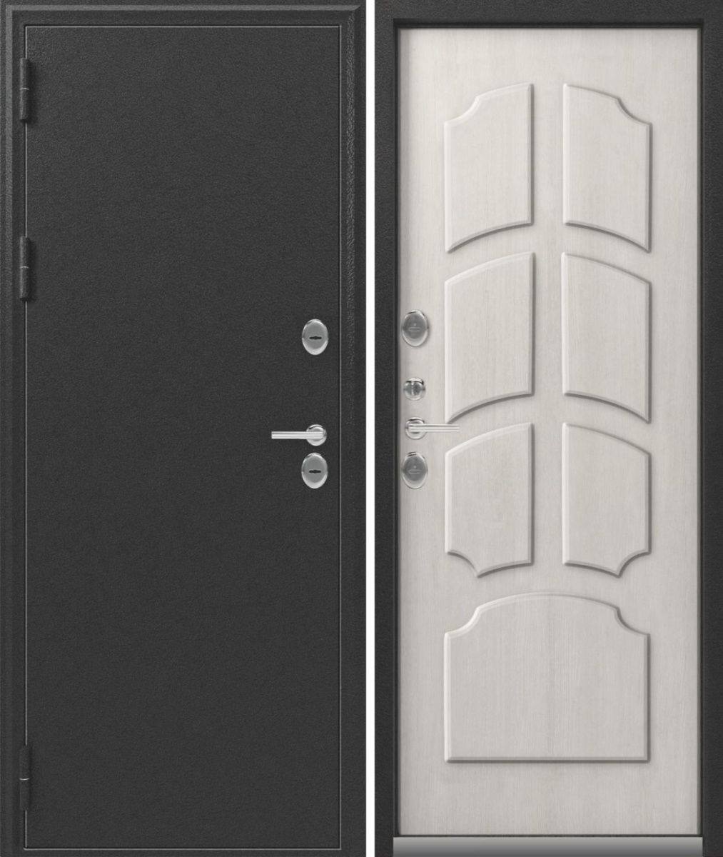 Для снижения вероятности промерзания замковой зоны на двери установлены два сувальдных замка. Цилиндровые механизмы отсутствуют.