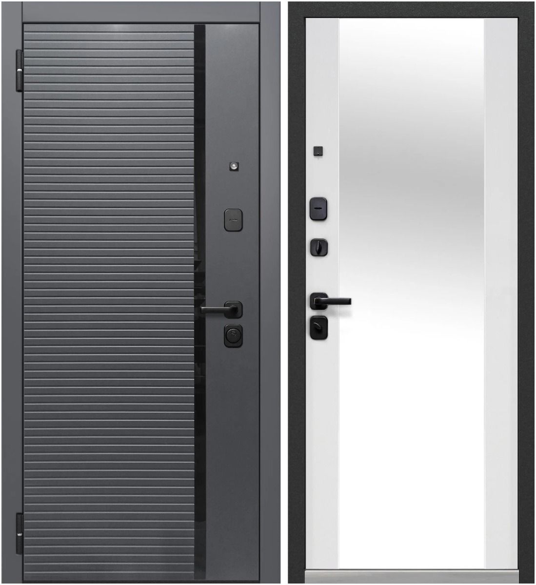 Люксор 2МДФ Горизонталь Сатин графит - Эмалит белый с встроенным зеркалом в пол, Люксор (Luxor) — купить в г. Томске в компании RosDoor (Сталь-сервис)