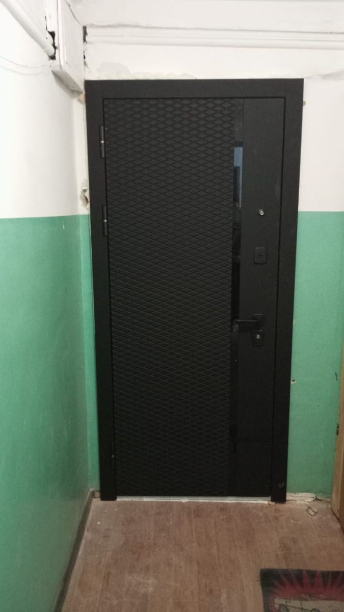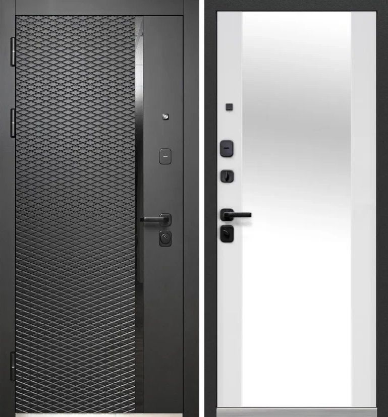 Входная дверь Люксор 2МДФ Ромб Вертикаль Антрацит софт - встроенное Зеркало Эмалит белый — купить в Томске в компании RosDoor (Сталь-сервис)