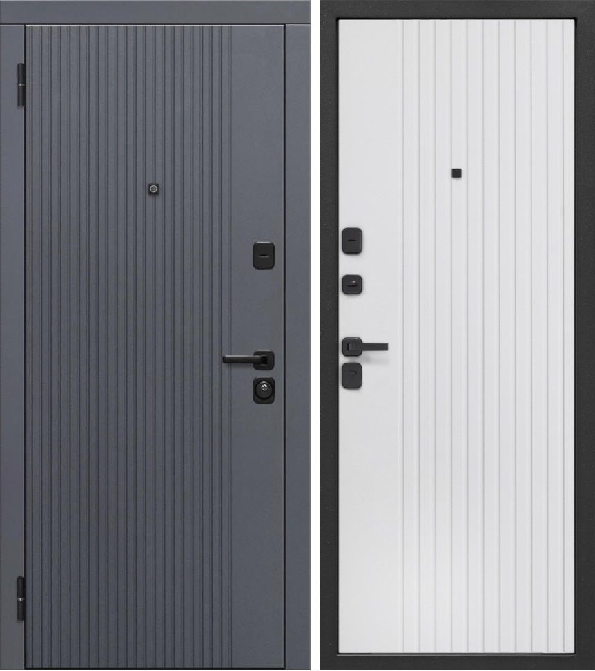 Входная дверь Люксор 2МДФ Вертикаль Сатин графит - Эмалит белый — купить в Томске в компании RosDoor (Сталь-сервис)