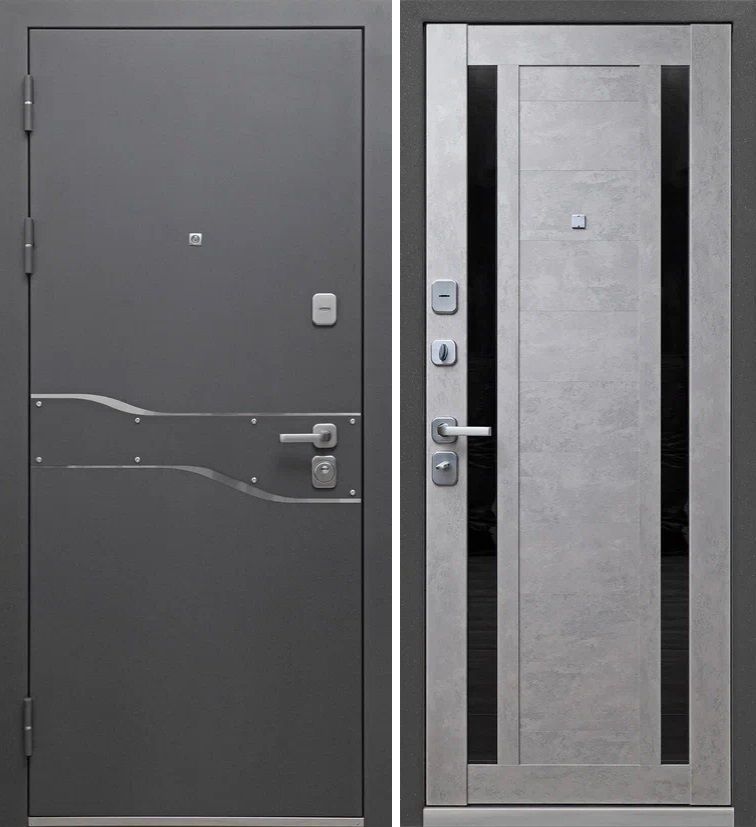 Входная дверь Люксор 2мм Муар антрацит микс темный - Бетон серый Царга (стекло Лакобель) — купить в Томске в компании RosDoor (Сталь-сервис)