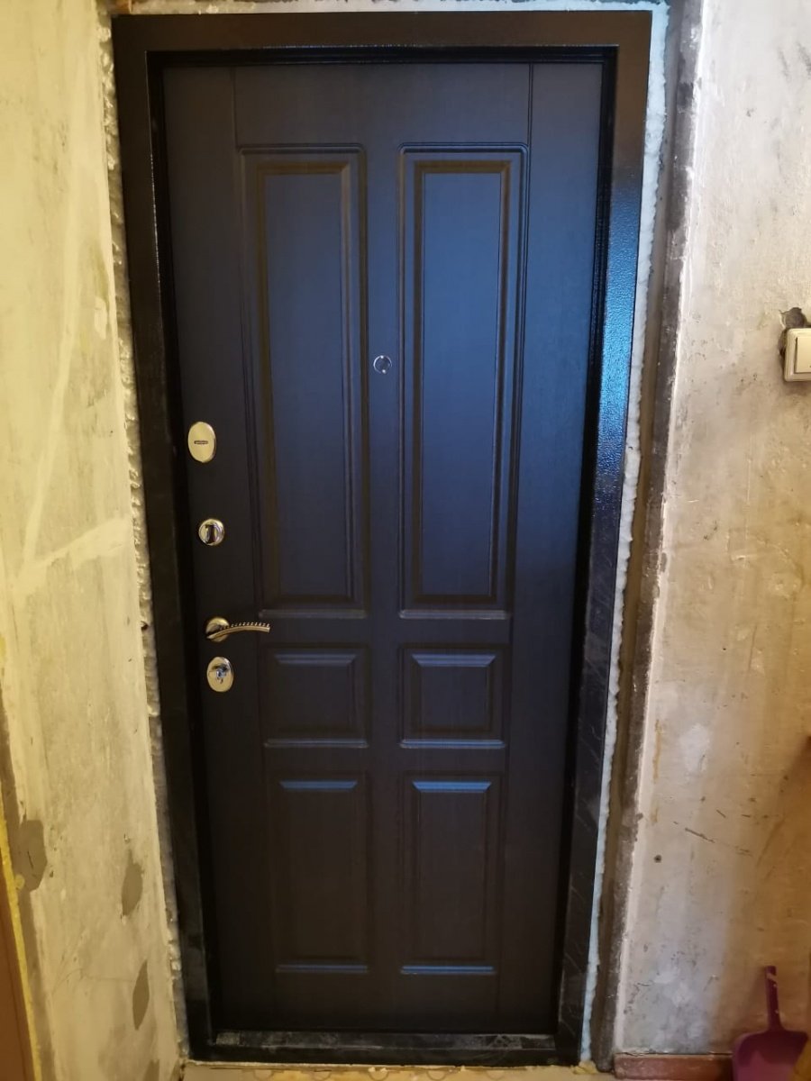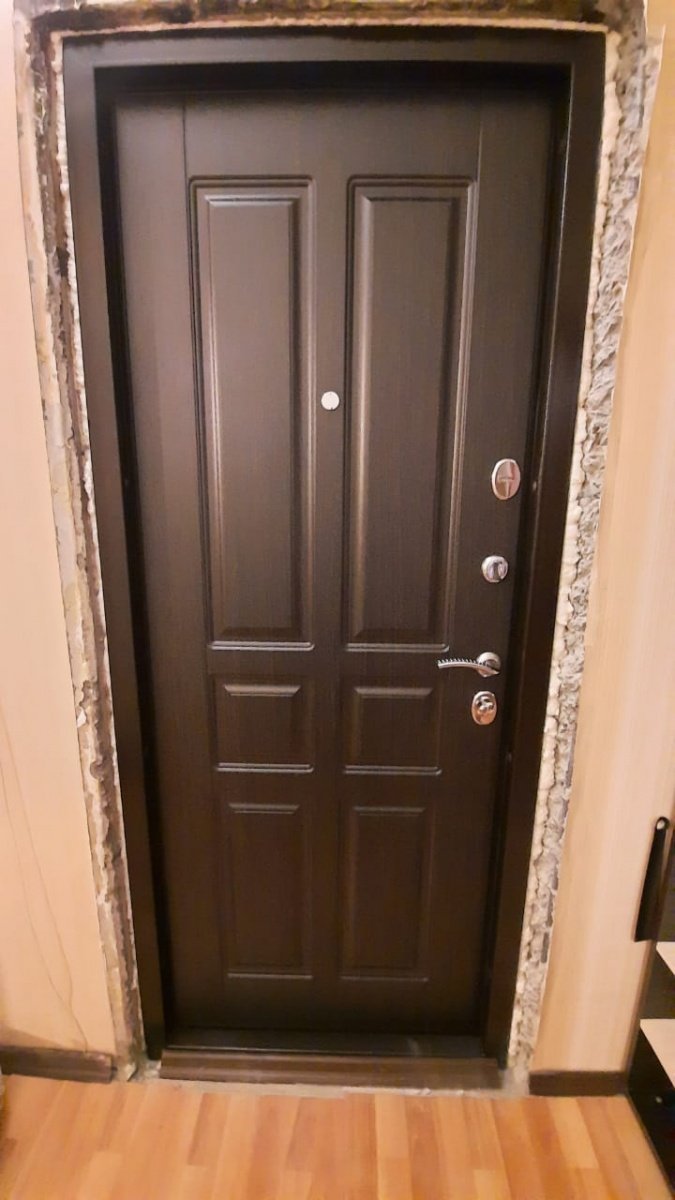 • Коробка двери объединена с широким фигурным наличником (перекрывает зазор 55 мм!), представляет собой цельноформованный профиль со специальным гибом жесткости и резиновым уплотнением по периметру (1-й контур). Материал – сталь рулонная холоднокатаная толщиной 1,2 мм. Коробка утепленная. Теплозвукоизоляция осуществляется при монтаже (утеплитель поставляется в комплекте);